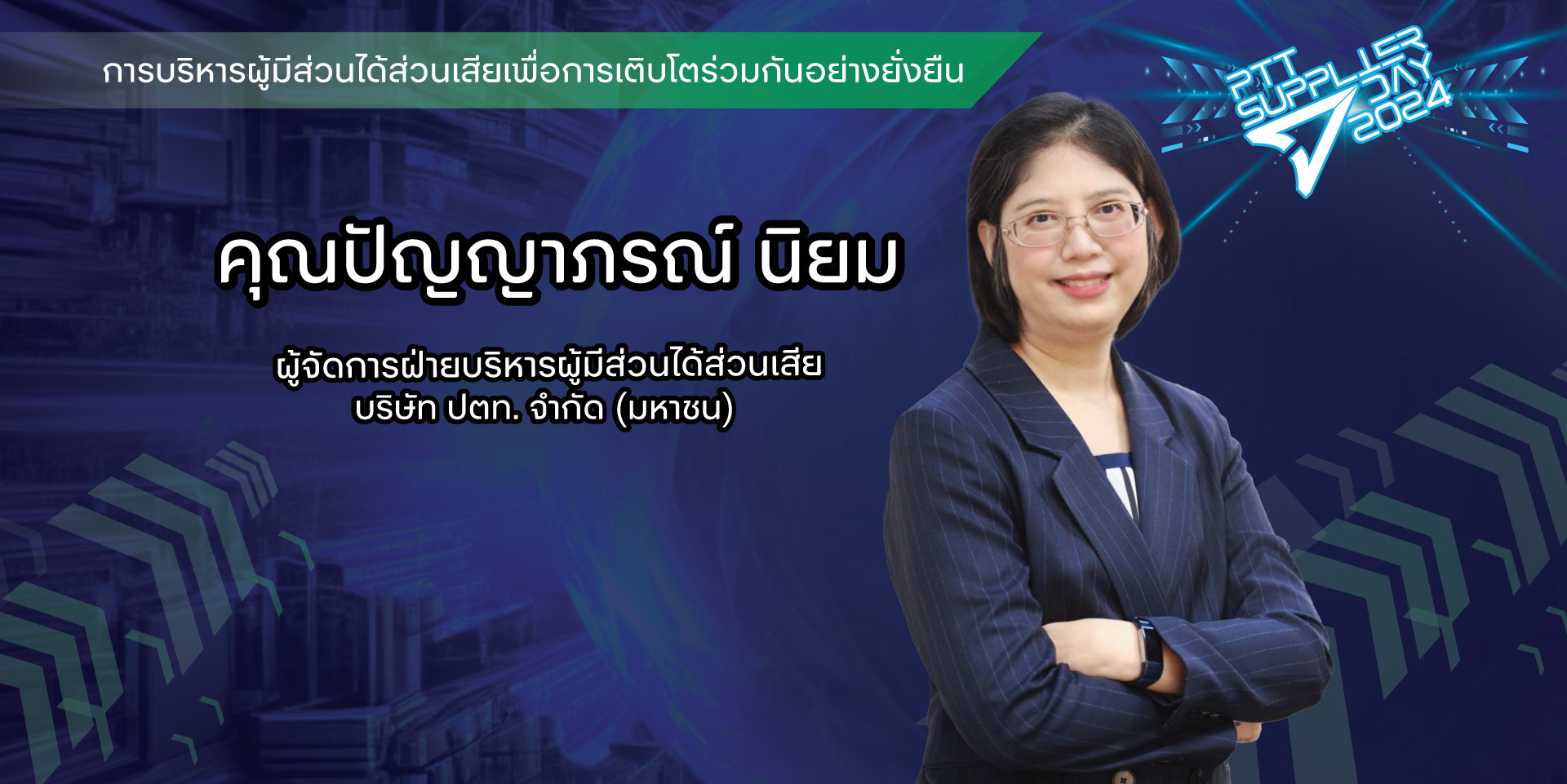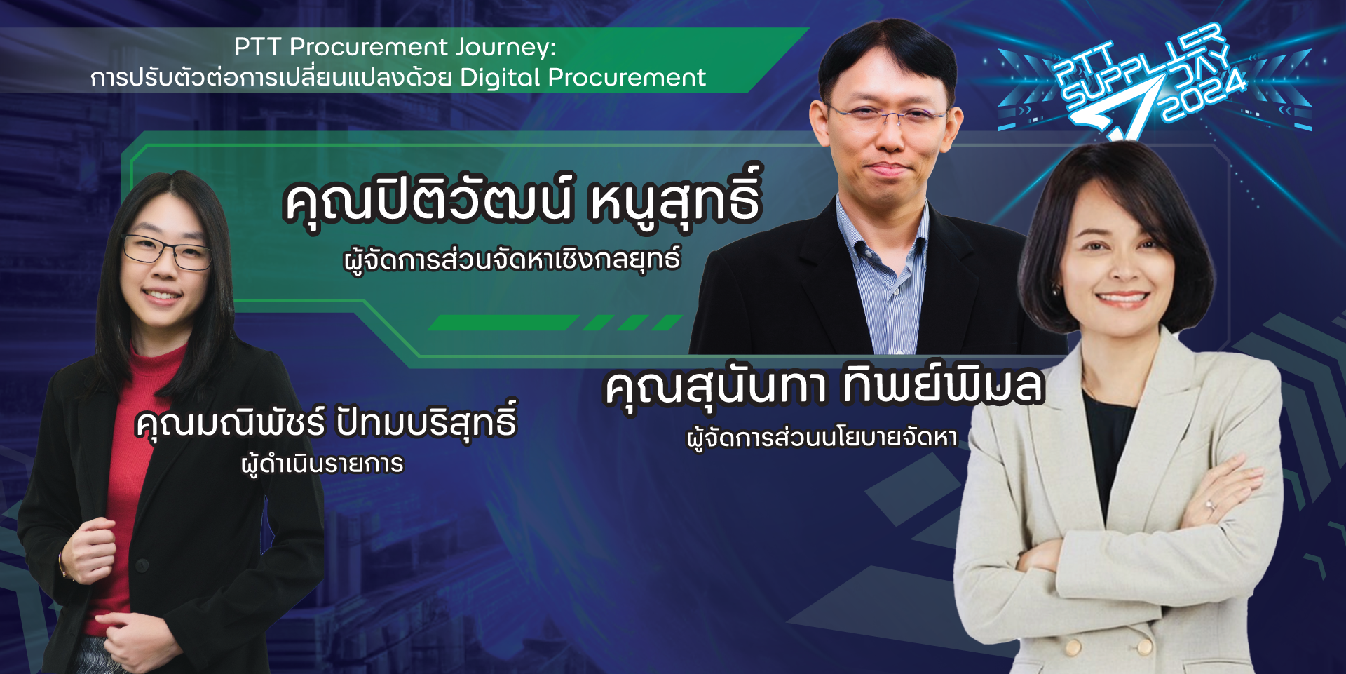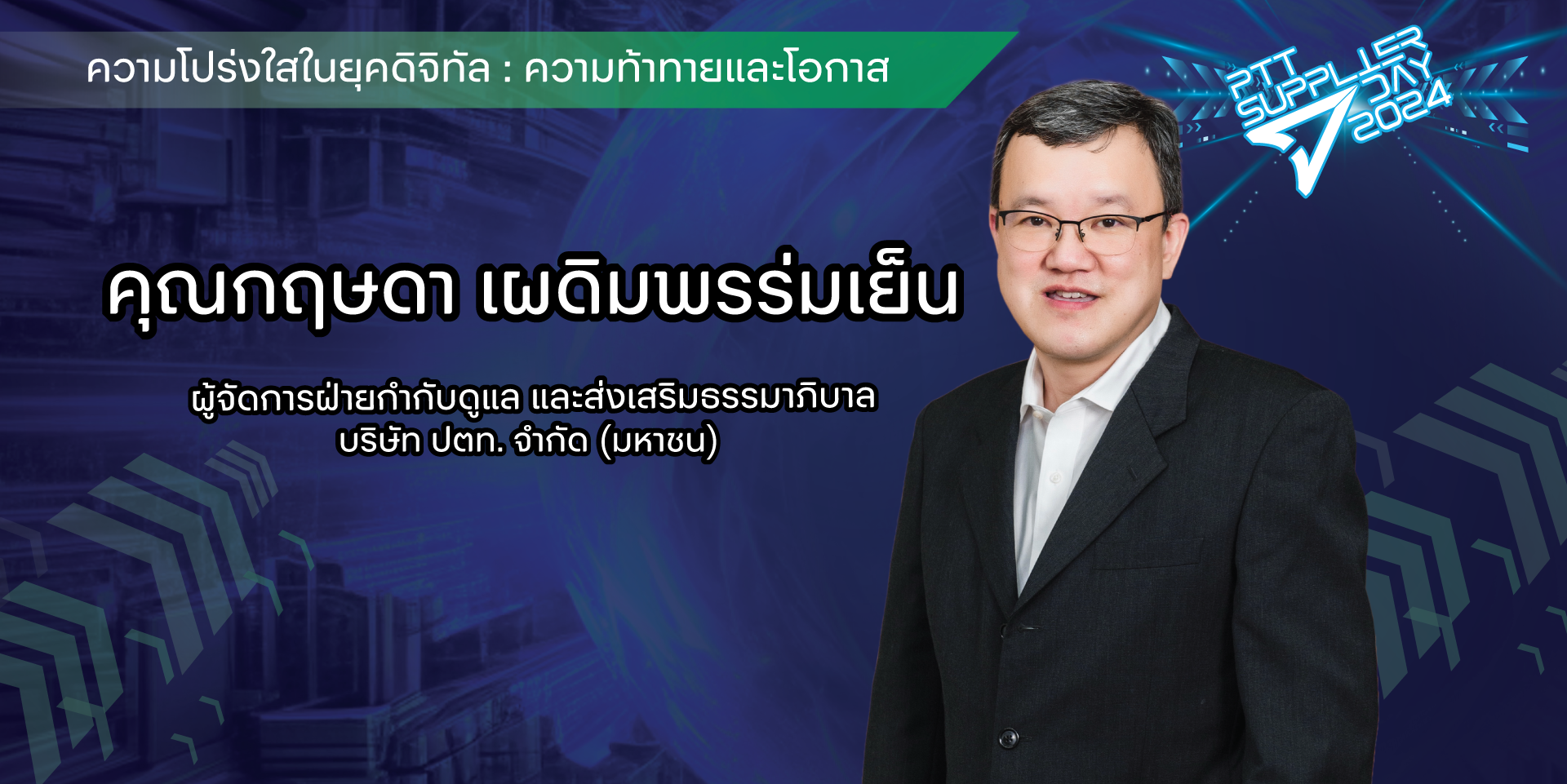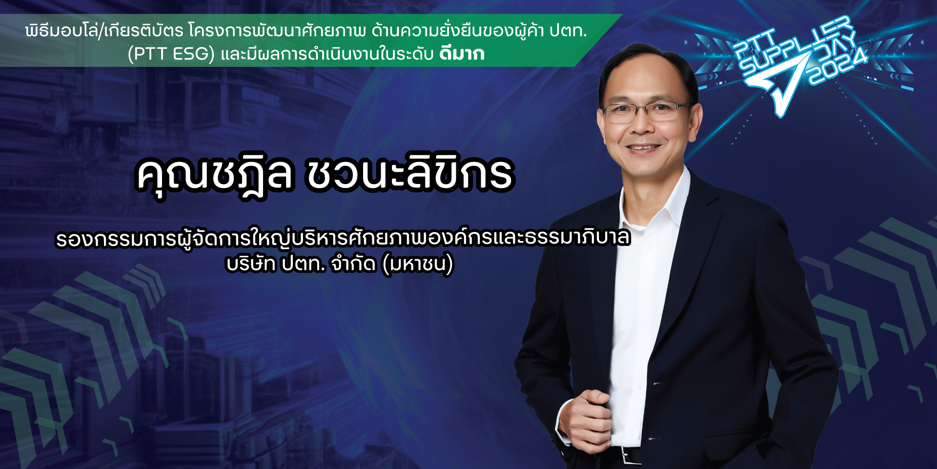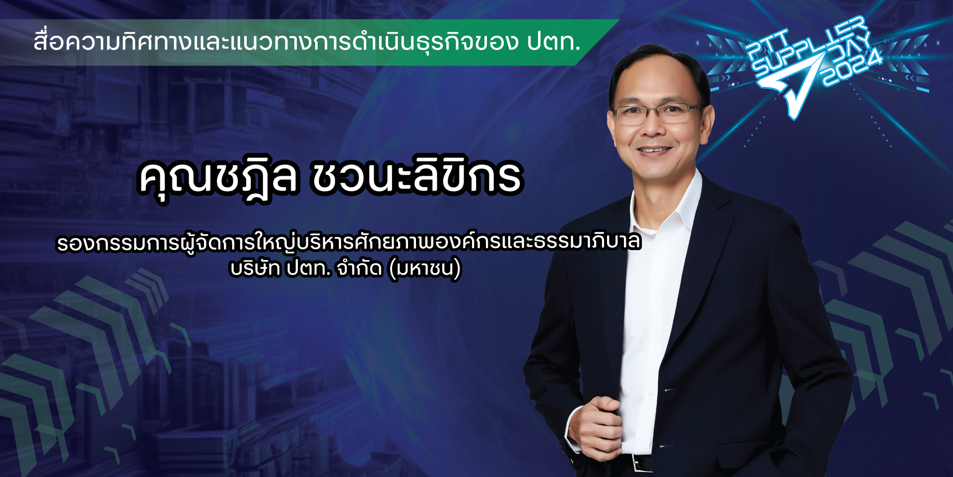 ฝ่ายกลยุทธ์จัดหาและบริหารสำนักงาน จัดงานสัมมนาผู้ค้า ปตท. ประจำปี 2567 (PTT Supplier Day 2024) ภายใต้แนวคิด "The Next Chapter: Together for a Sustainable Thailand ก้าวไปด้วยกันอย่างยั่งยืน" ซึ่งได้รับเกียรติจาก คุณชฎิล ชวนะลิขิกร รองกรรมการผู้จัดการใหญ่บริหารศักยภาพองค์กรและธรรมาภิบาล เป็นประธานในงานพร้อมสื่อความทิศทางการดำเนินธุรกิจของ ปตท. พร้อมด้วย คุณศรีศุกร์ บุญเพ็ชร์ ผู้ช่วยกรรมการผู้จัดการใหญ่พัฒนาศักยภาพองค์กร กล่าววัตถุประสงค์การจัดงาน โดยมีผู้บริหาร พนักงาน สายงานจัดหาของกลุ่ม ปตท. และผู้ค้าเข้าร่วมงานกว่า 150 ท่าน ณ โรงแรมรามาการ์เด้นส์ กรุงเทพฯ เมื่อวันที่ 11 กันยายน 2567 ที่ผ่านมา